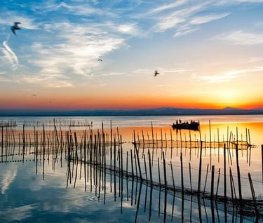Venez au village d’El Palmar et goûtez ses plats typiques. Goûtez le all-i-pebre (ragoût à base d’anguilles et de pommes de terre) et la llisa marinée (mulet) et découvrez une nouvelle façon de profiter de la nourriture : en la dégustant tout en comprenant ses origines. Faites une promenade sur l’un des six itinéraires balisés du parc naturel. Découvrez tous les oiseaux aquatiques, la végétation et vivez comme un vrai pêcheur local dans le plus grand lac d’Espagne. Vous aurez envie d'y revenir.